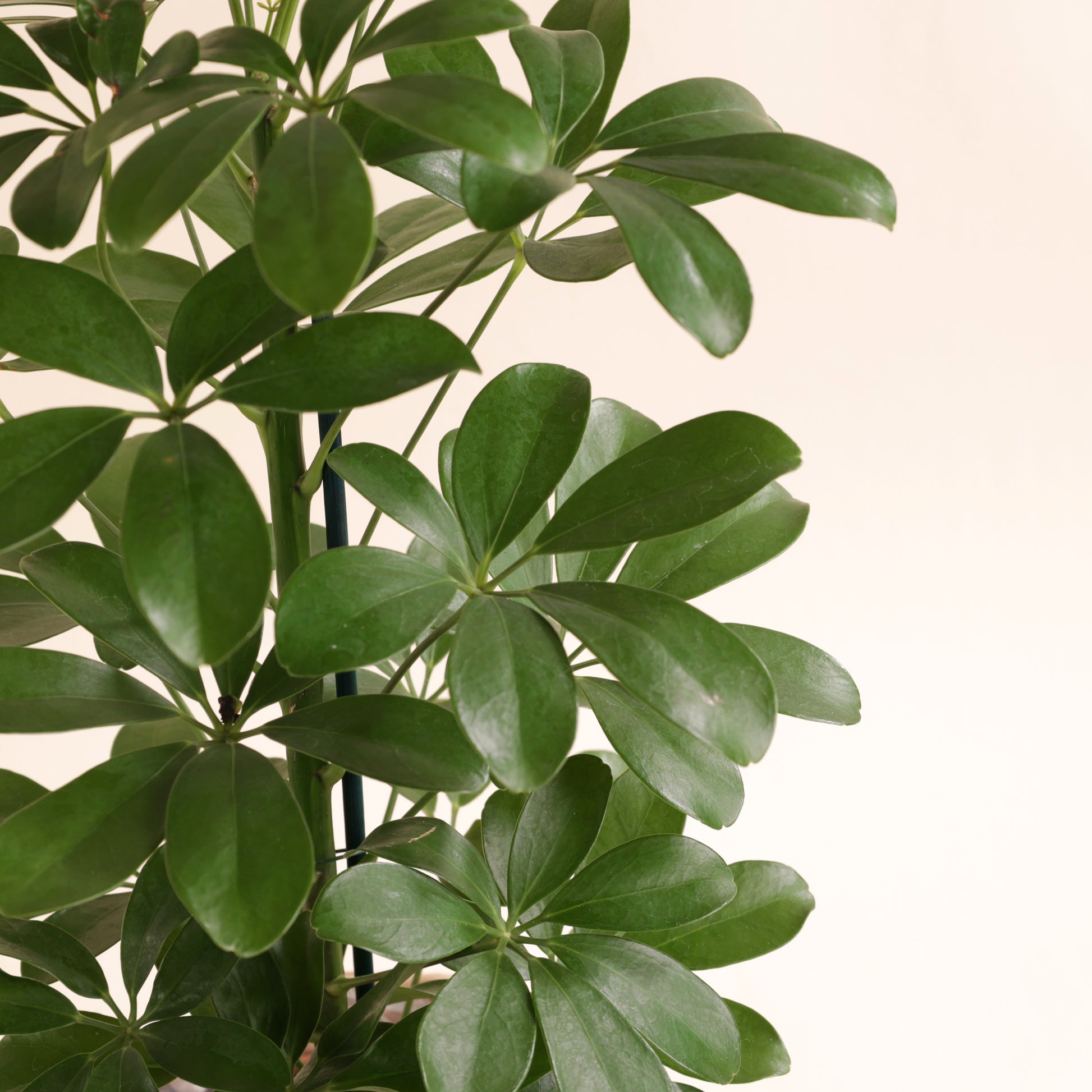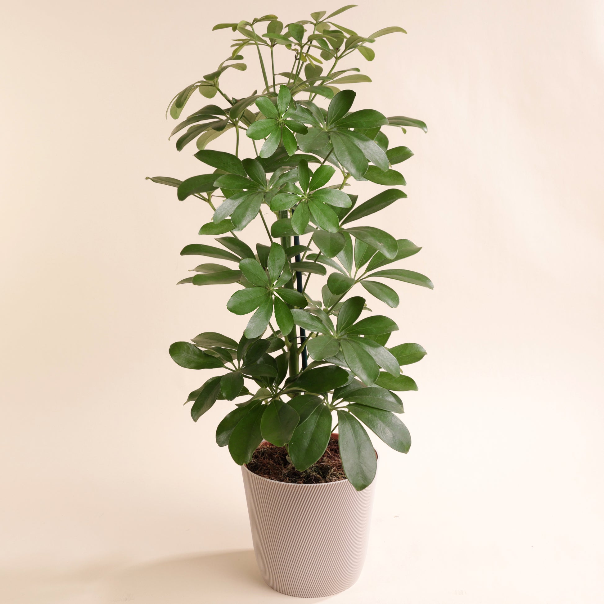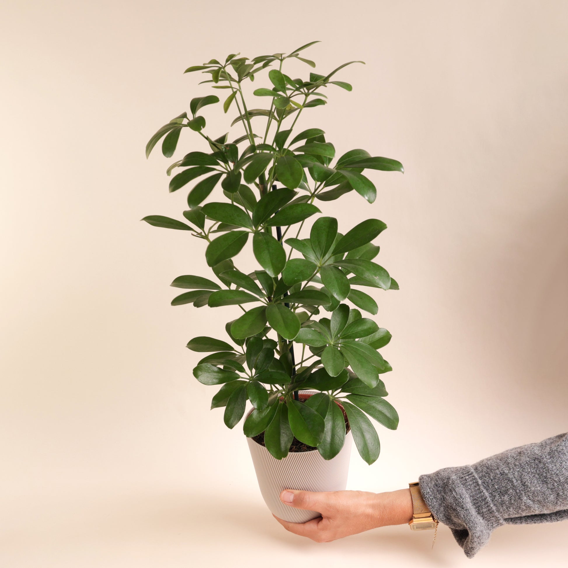 Mit seinem leuchtenden und grafischen Blattwerk bringt der Schefflera Arboricola Nora einen Hauch von Frische und Ruhe in Ihr Zuhause. Mit einer Höhe von 45 cm entfaltet er sich anmutig in seinem 13 cm hohen Svala-Topf, der seinen natürlichen Stil unterstreicht. Als Symbol für Ausgeglichenheit und Vitalität lädt er die Natur ein, sich bei Ihnen zu entfalten.